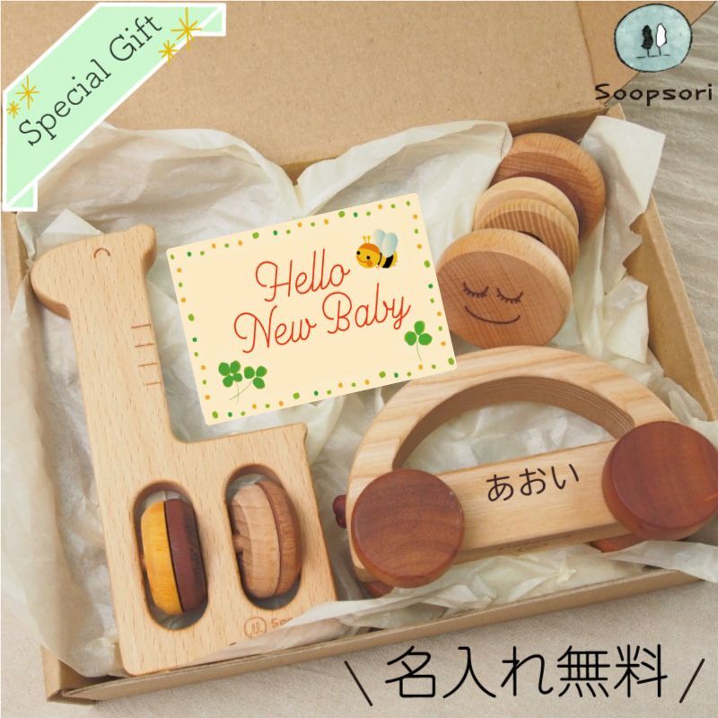 0歳 木のおもちゃ 出産祝い ギフトセット 音おもちゃ ベビーおもちゃ カタカタセット 木製 くるま ラトル がらがら 赤ちゃん ファーストトイ [mr-05]