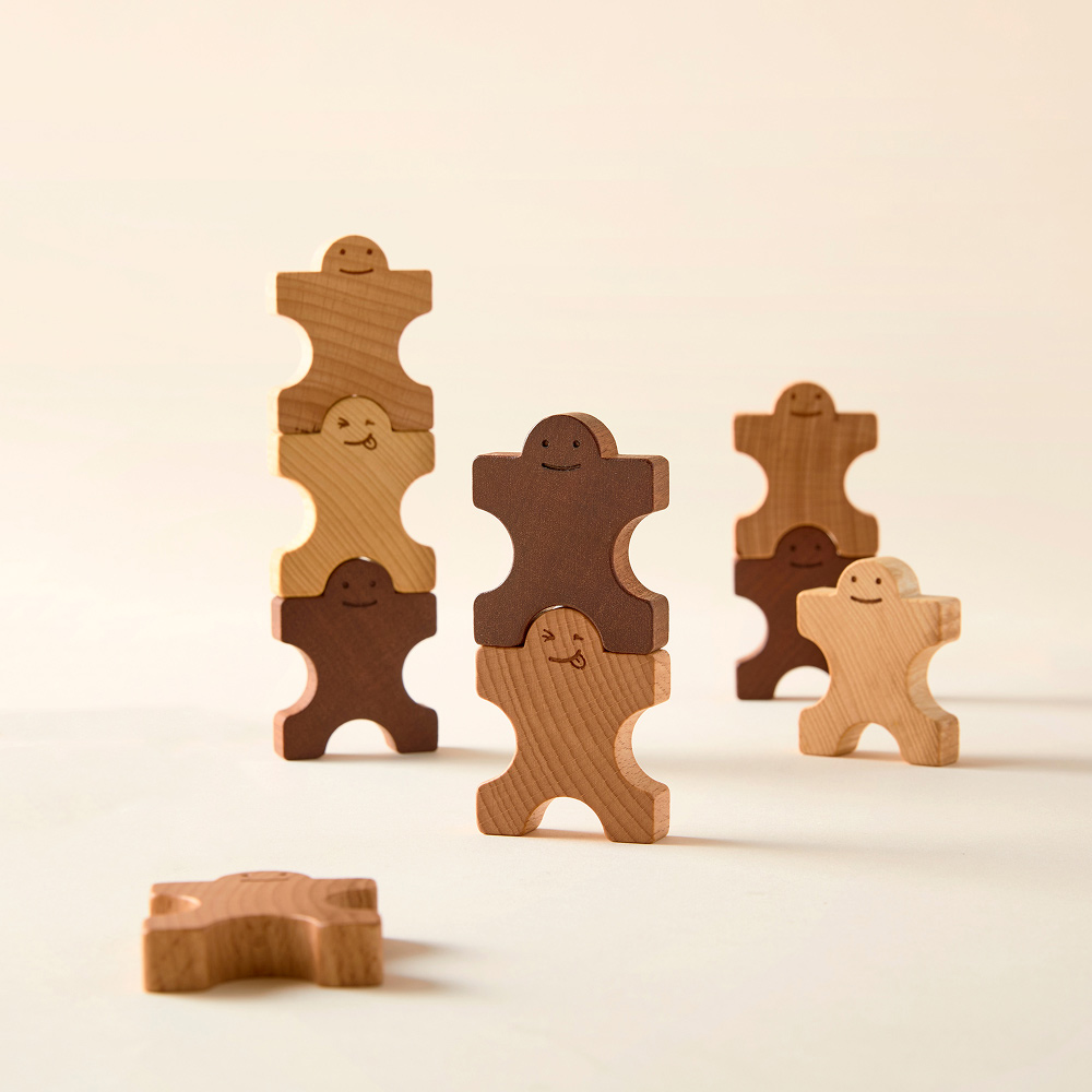木のおもちゃ 積み木 知育玩具 1歳 2歳 木製人形ブロック 組んであそぼうともだち ドミノ9P [ch-27]